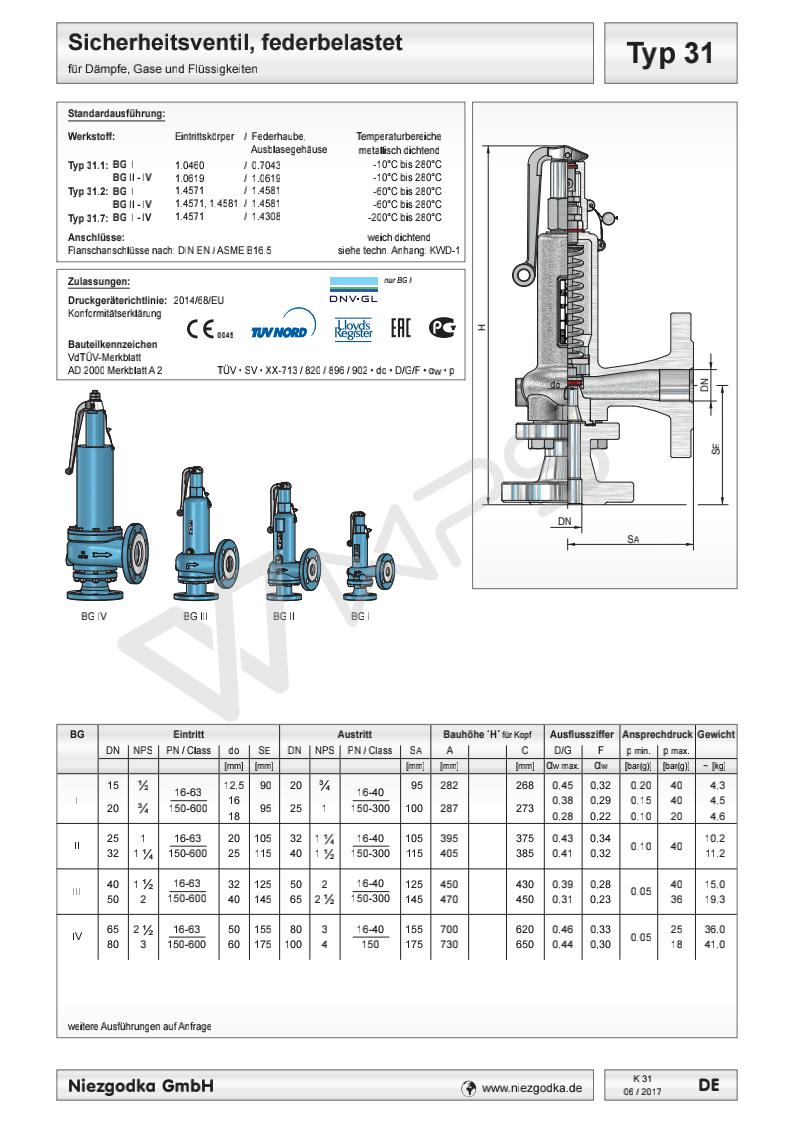 | 德國(guó)進(jìn)口法蘭安全閥 Typ 31 |