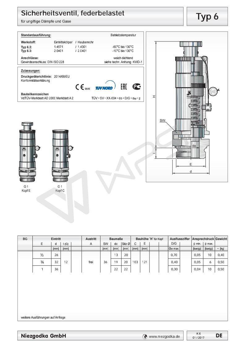 德國進口螺紋安全閥、排空安全閥 Typ 6