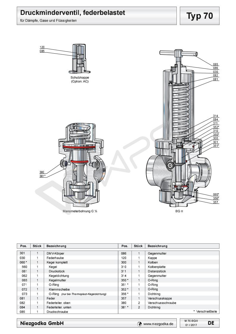 Typ 70 德國進口螺紋減壓閥的技術參數