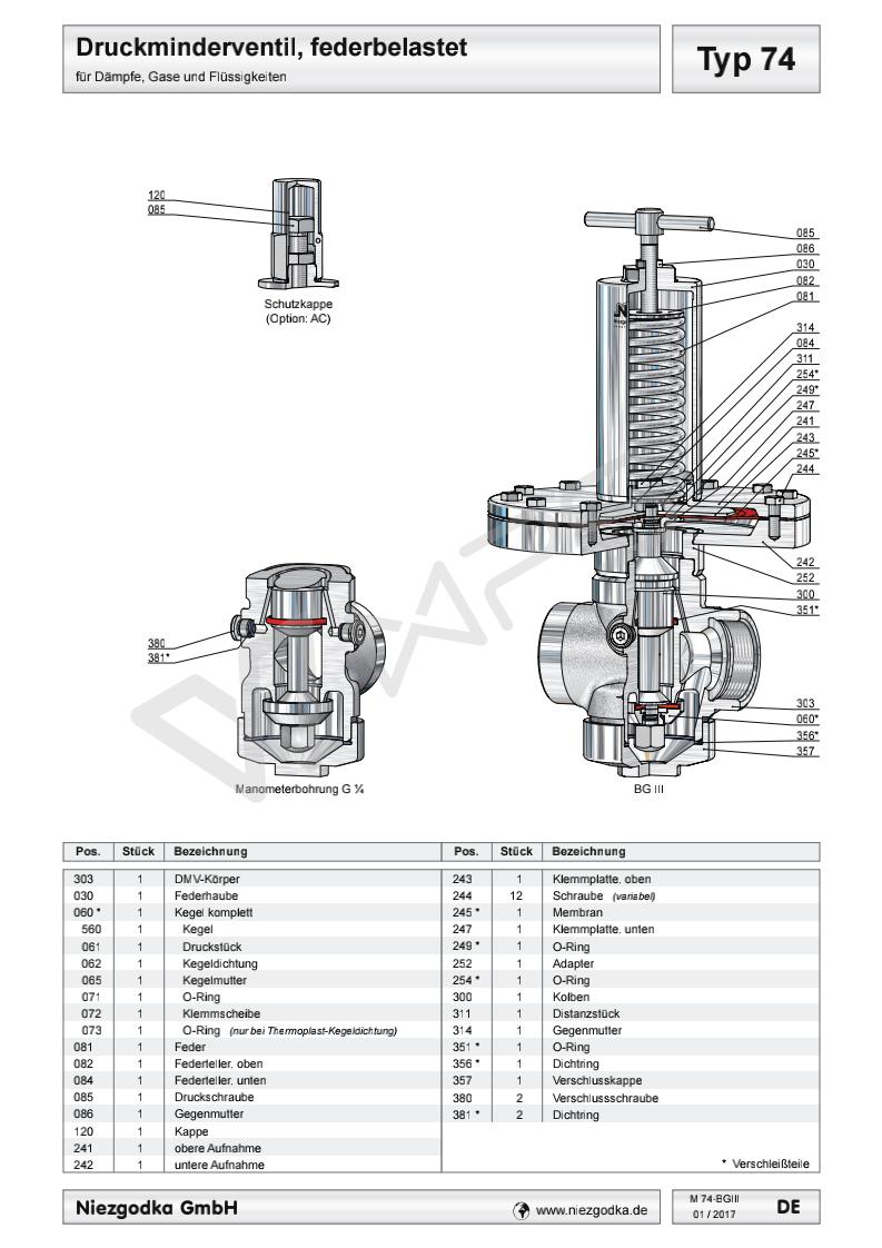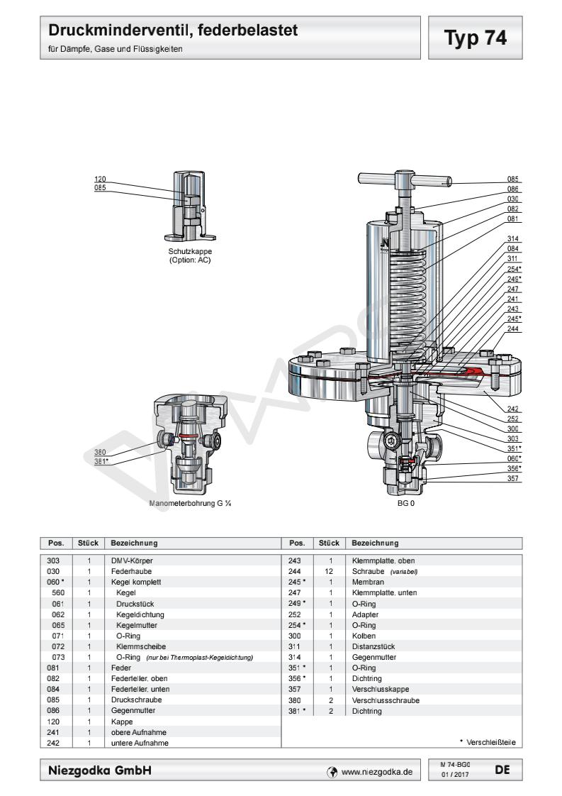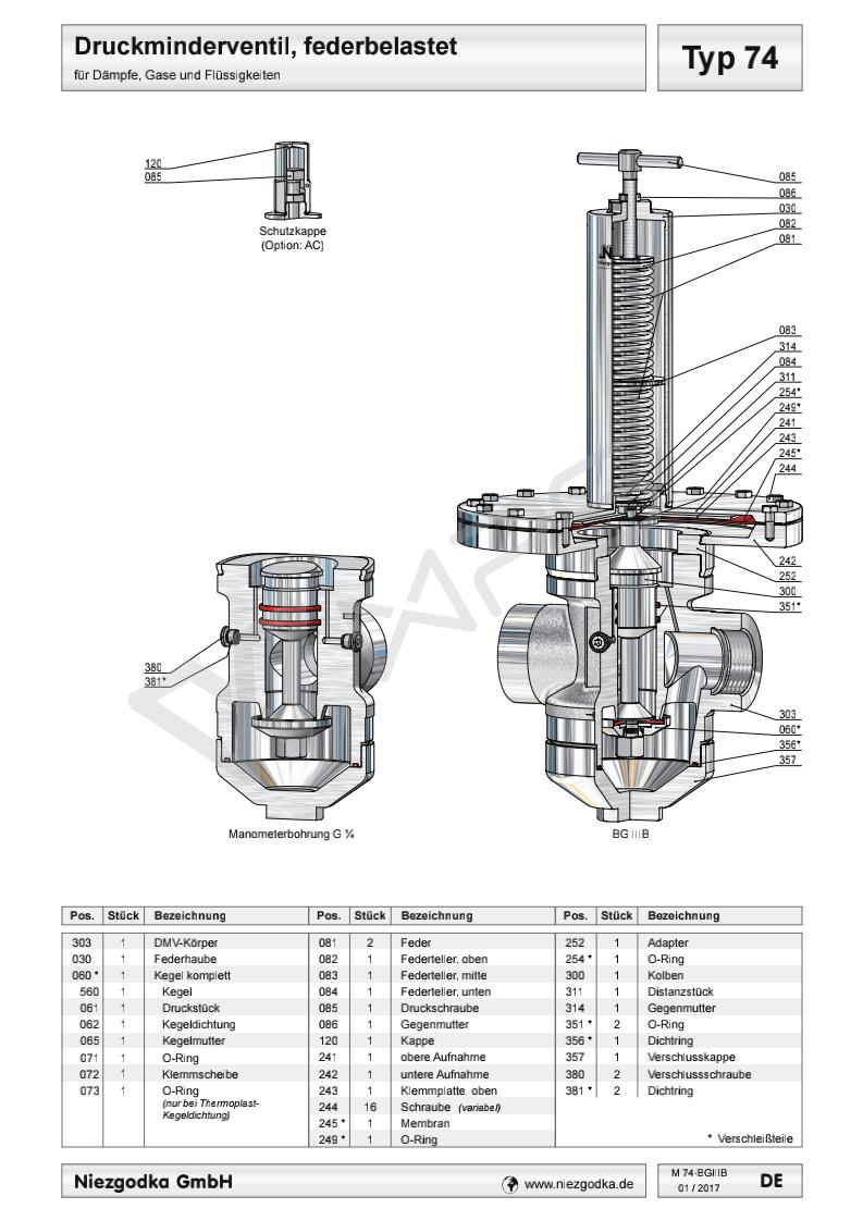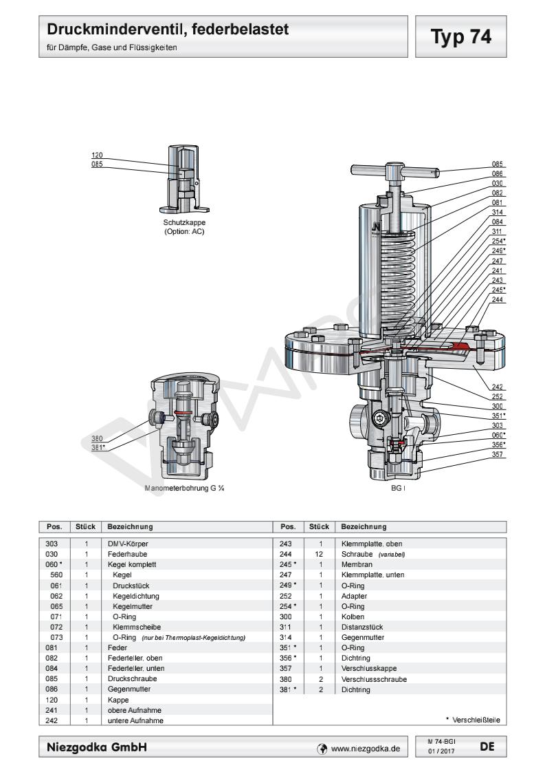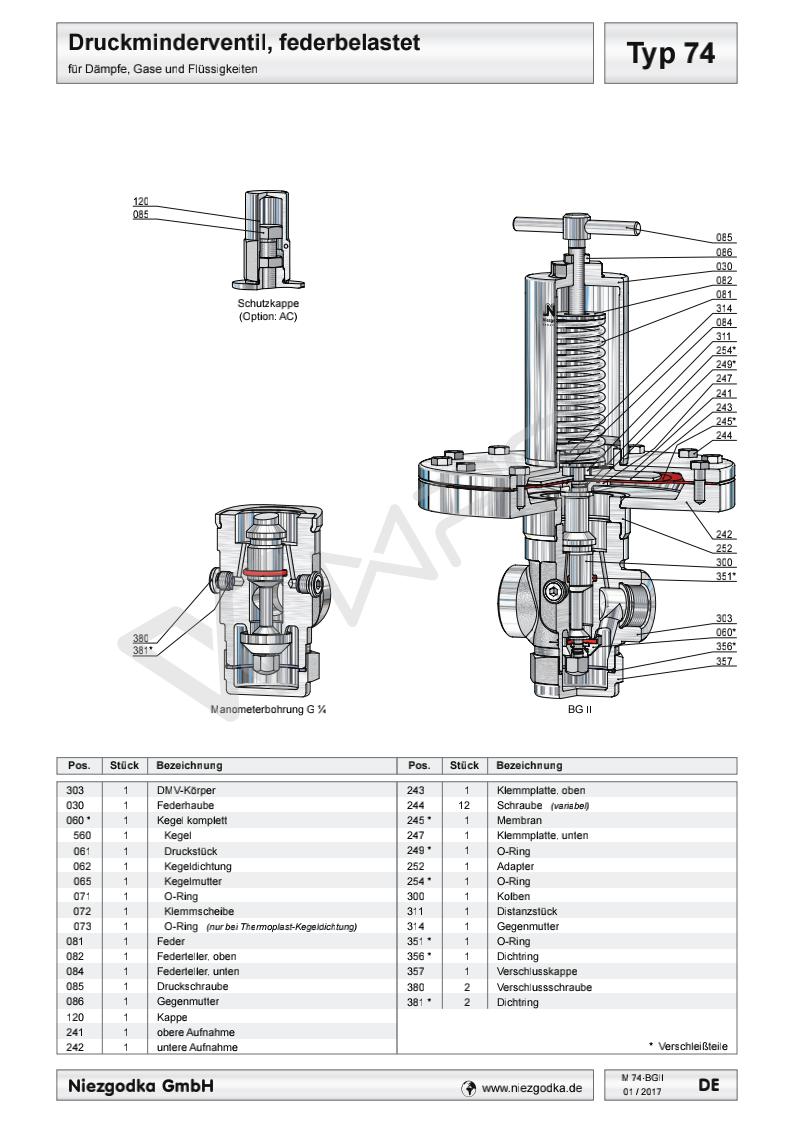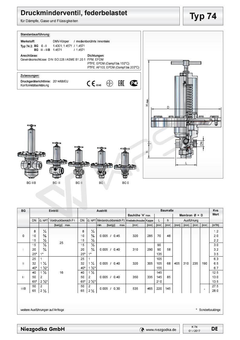 Typ 74 德國(guó)進(jìn)口超低壓螺紋減壓閥的各項(xiàng)技術(shù)參數(shù)