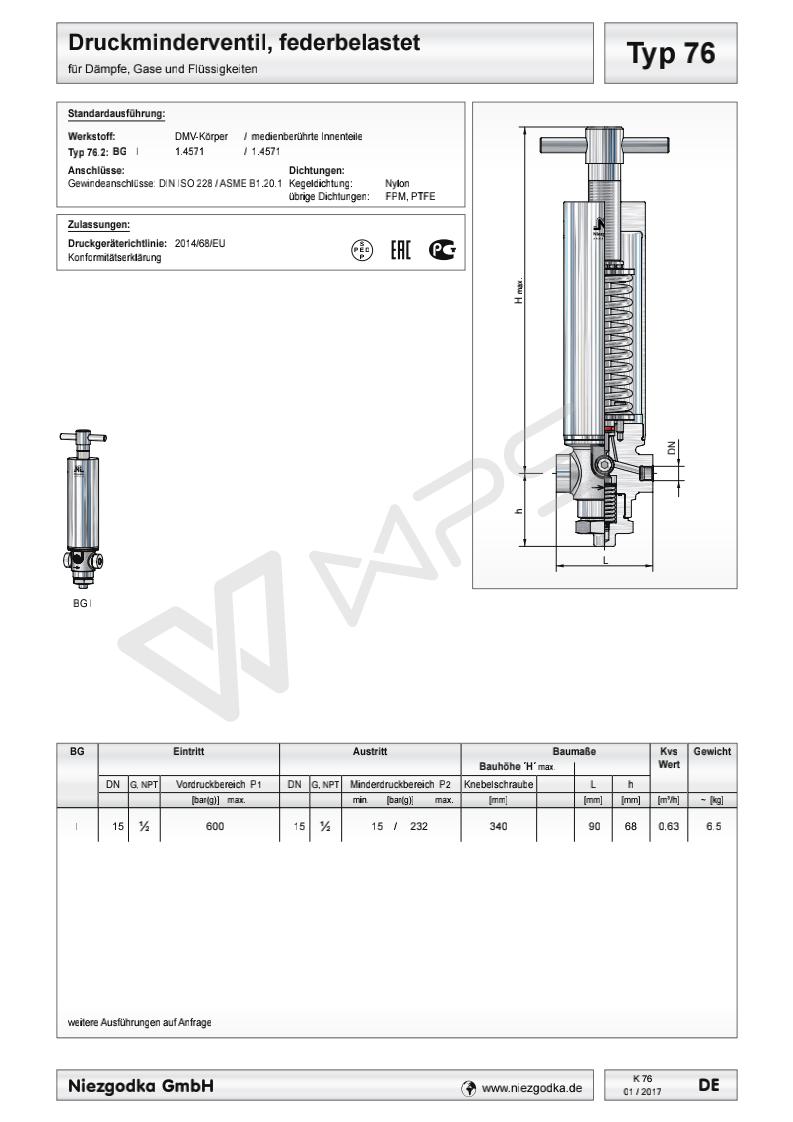 | 德國進(jìn)口高壓螺紋減壓閥的各項技術(shù)參數(shù)及性能指標(biāo) |
