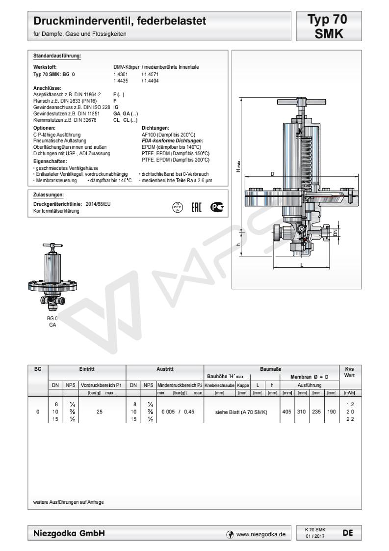 | 德國Niezgodka進口衛(wèi)生級超低壓減壓閥 Typ 70 SMK |
