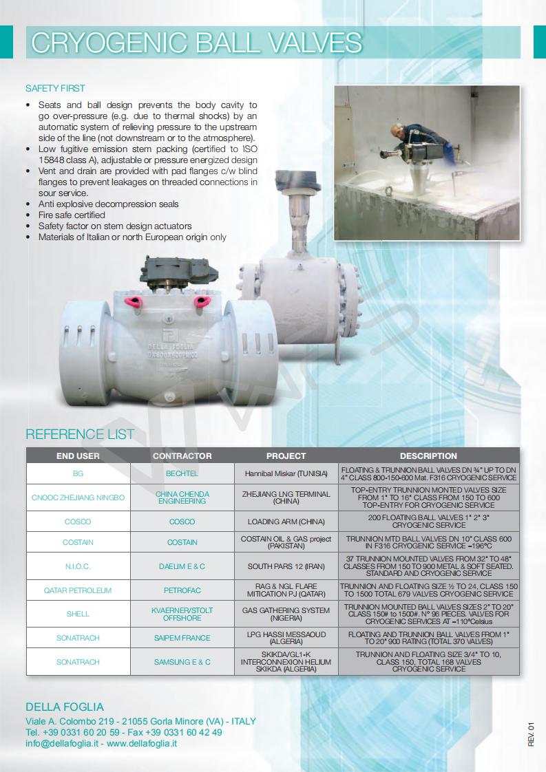 | 意大利DELLA FOGLIA球閥的分類參數 |
