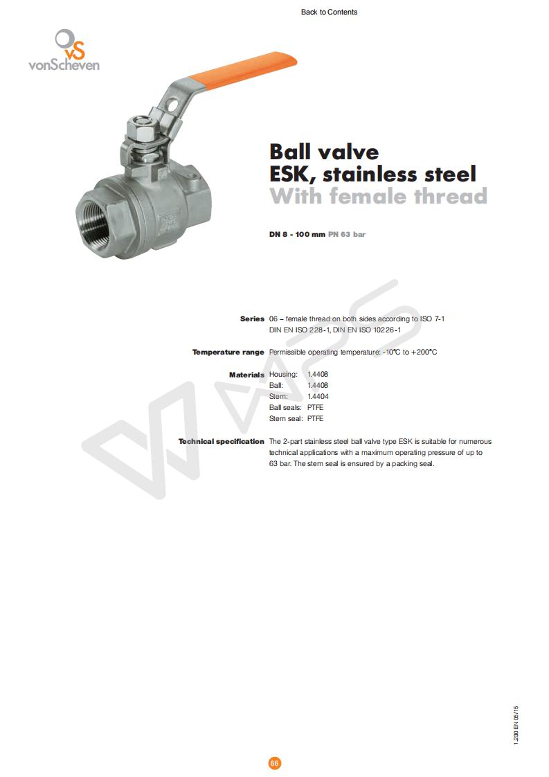 | 內螺紋不銹鋼球閥ESK的技術文件 |