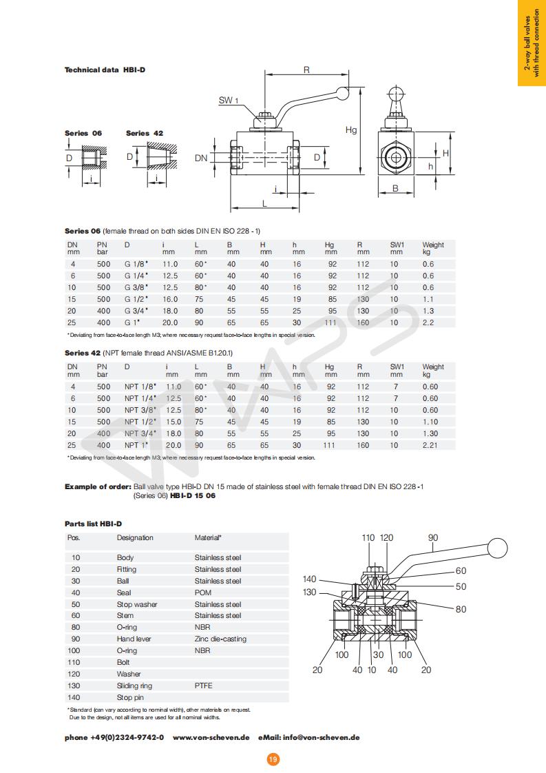 | 德國(guó)Von Scheven原裝進(jìn)口板式內(nèi)螺紋不銹鋼高壓球閥的技術(shù)參數(shù) |