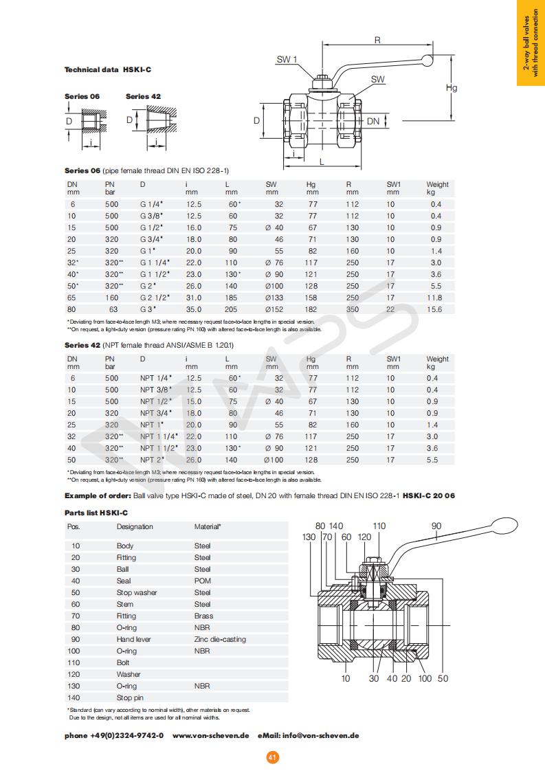 Von Scheven內螺紋鋼制高壓球閥的各項技術參數