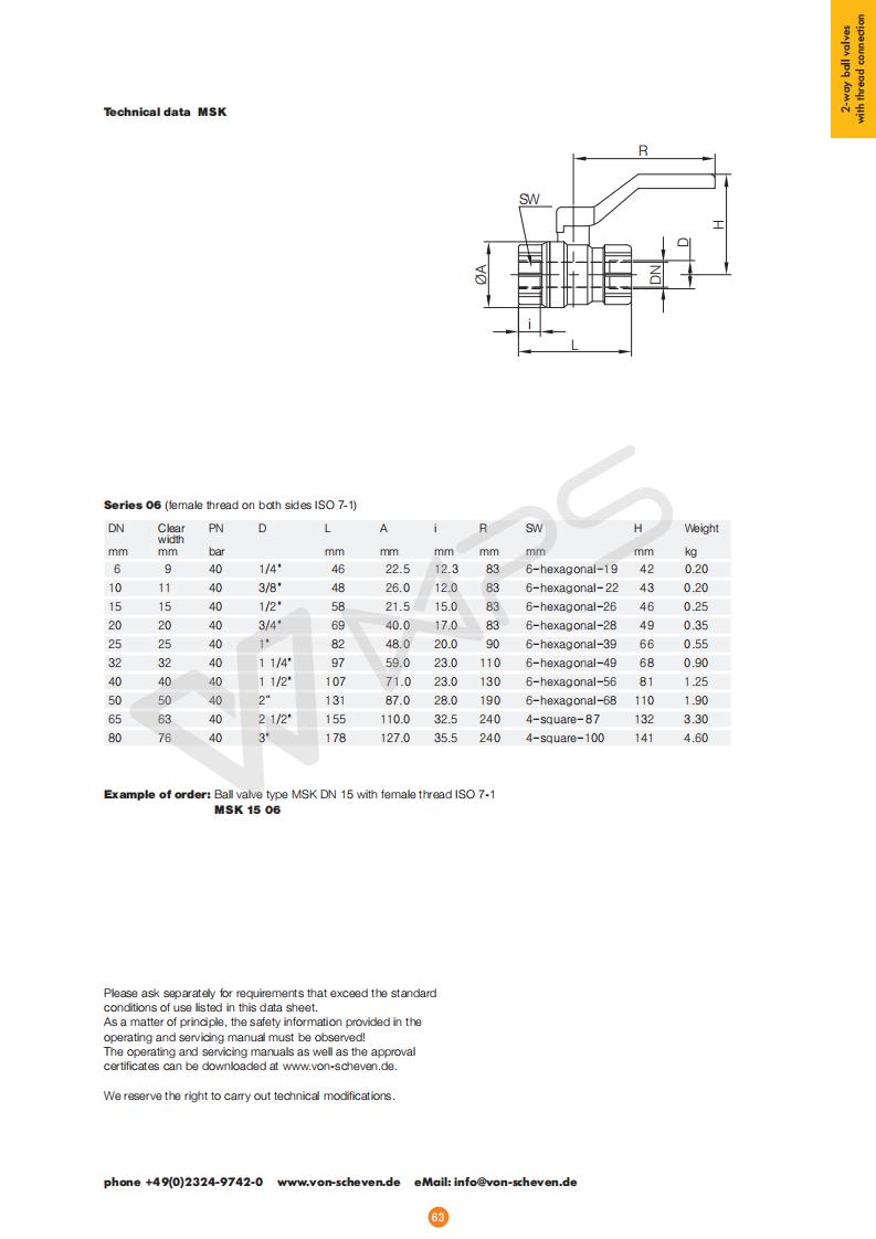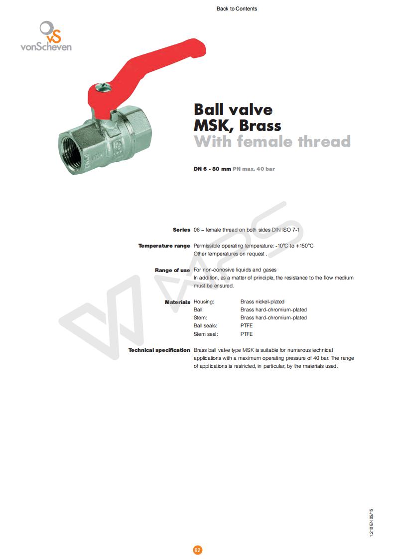 進(jìn)口內(nèi)螺紋黃銅球閥Von Scheven的各項(xiàng)技術(shù)參數(shù)