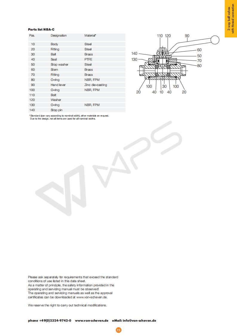 進口船用球閥NBA-C的各項技術參數