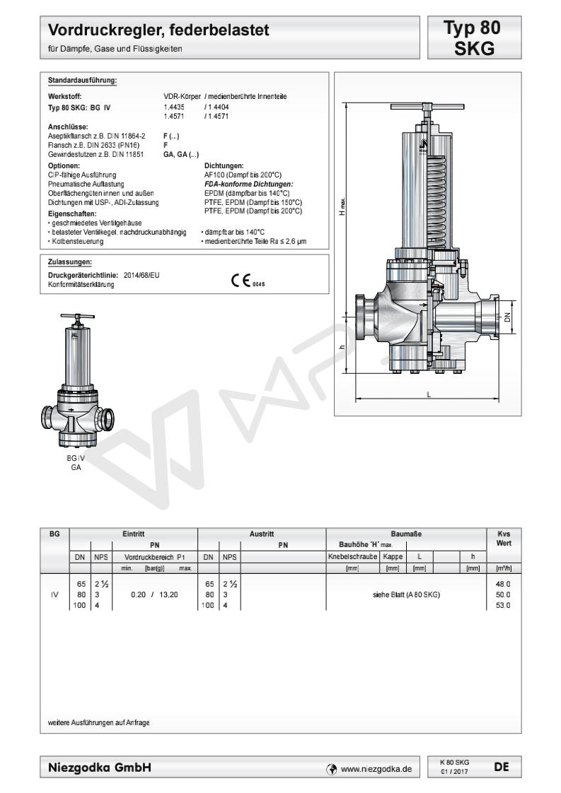 | Typ 80 SKG 德國Niezgodka進口衛生級壓力控制閥 |