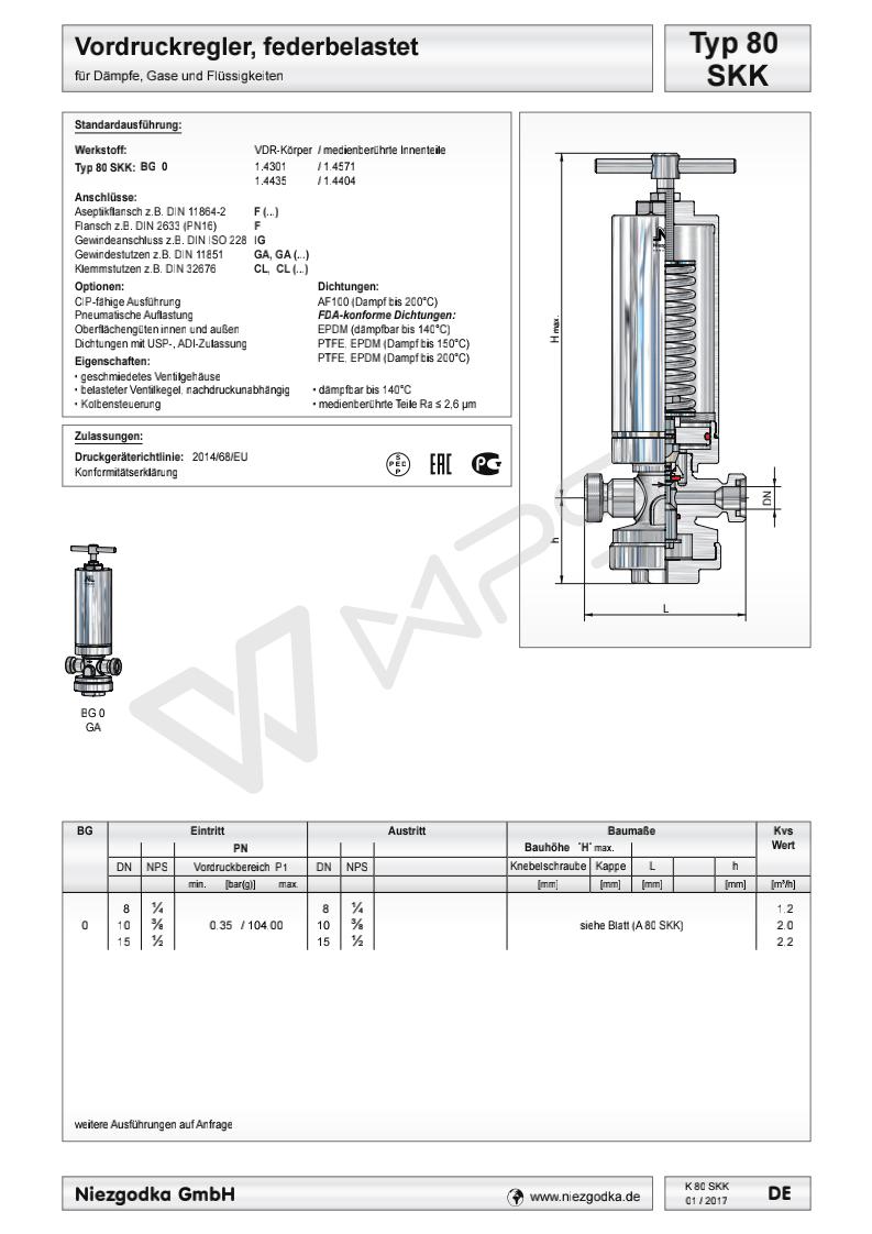 Typ 80 SKK 德國Niezgodka進口衛生級壓力控制閥