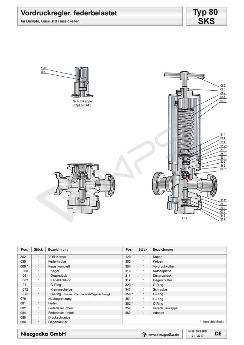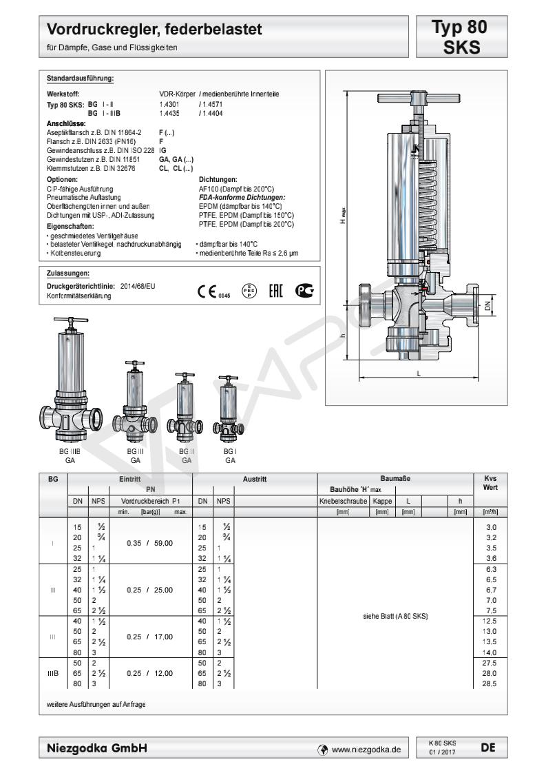 德國Niezgodka進口衛生級壓力控制閥 Typ 80 SKS