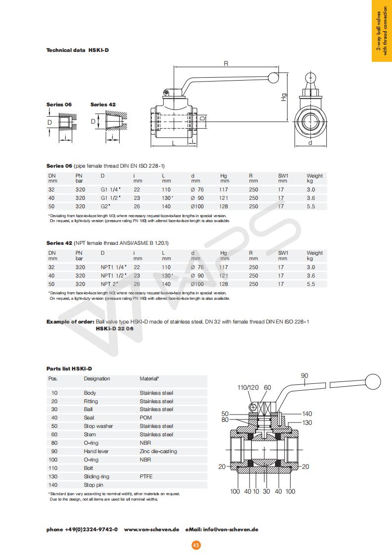 Von Scheven內螺紋不銹鋼高壓球閥的各項技術參數