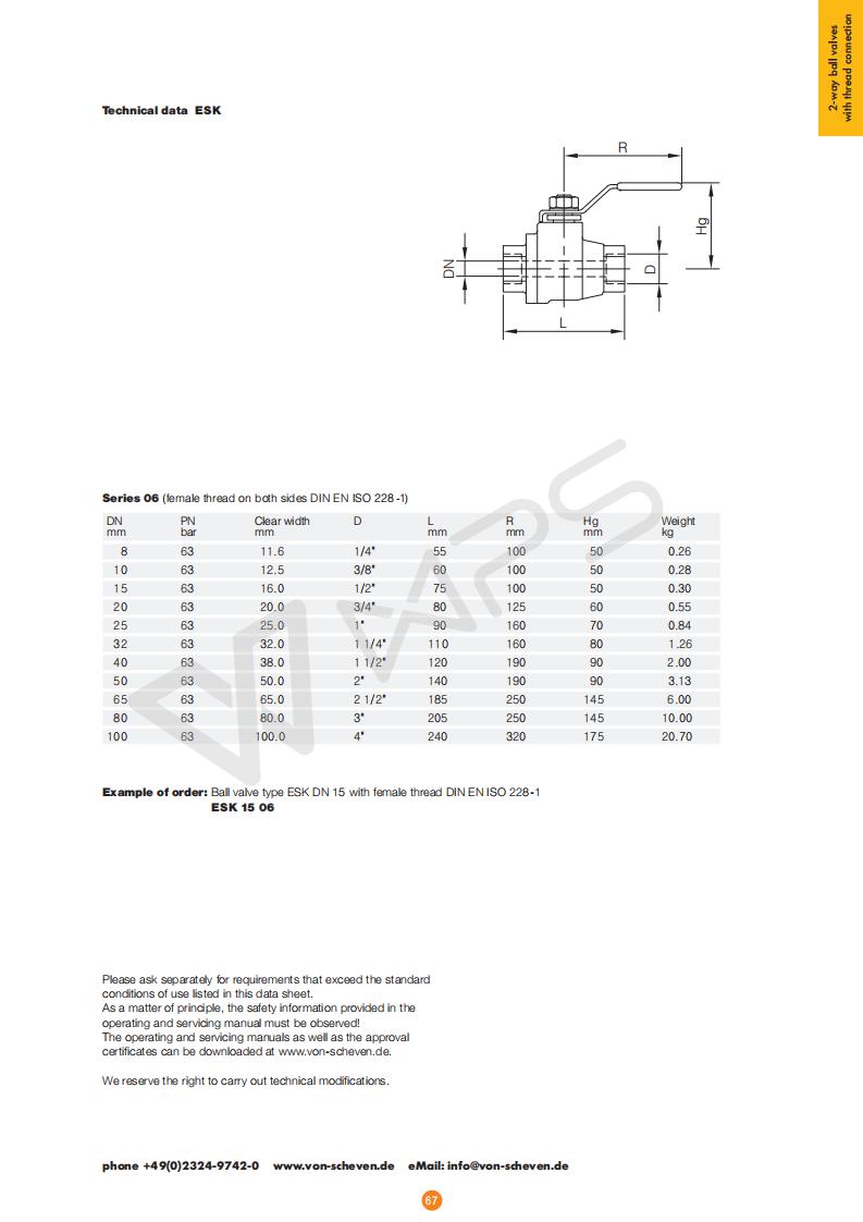 技術說明: ESK型是兩片式不銹鋼球閥適用于多種類型技術應用,最大操作壓力可達63bar。 閥桿密封由一個填料密封保證。